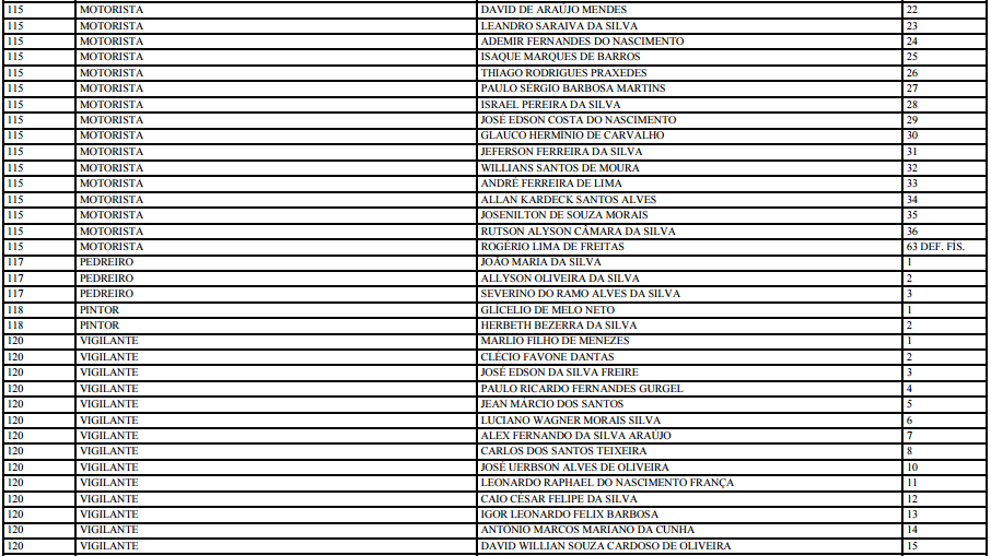 A seguir, confira imagens (clique para ampliar) com os nomes dos convocados e seus respectivos cargos: