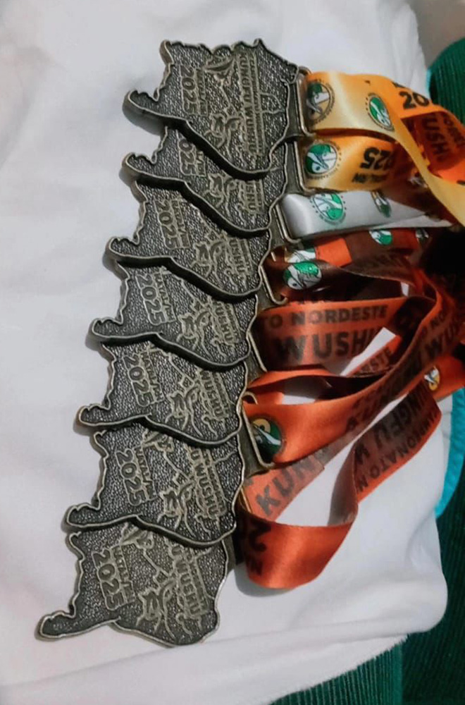 - Victória saiu com 1 ouro – armas articuladas e maleáveis – e 4 bronzes – outras mãos, armas longas, armas curtas e forma 16 do WuShu Esportivo.