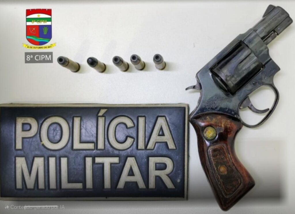 Após a busca pessoal e vistoria nas proximidades, os policiais conseguiram encontrar um revólver calibre .38 com cinco munições. O indivíduo teria admitido que estava com a arma de fogo, mas que não tinha registro.