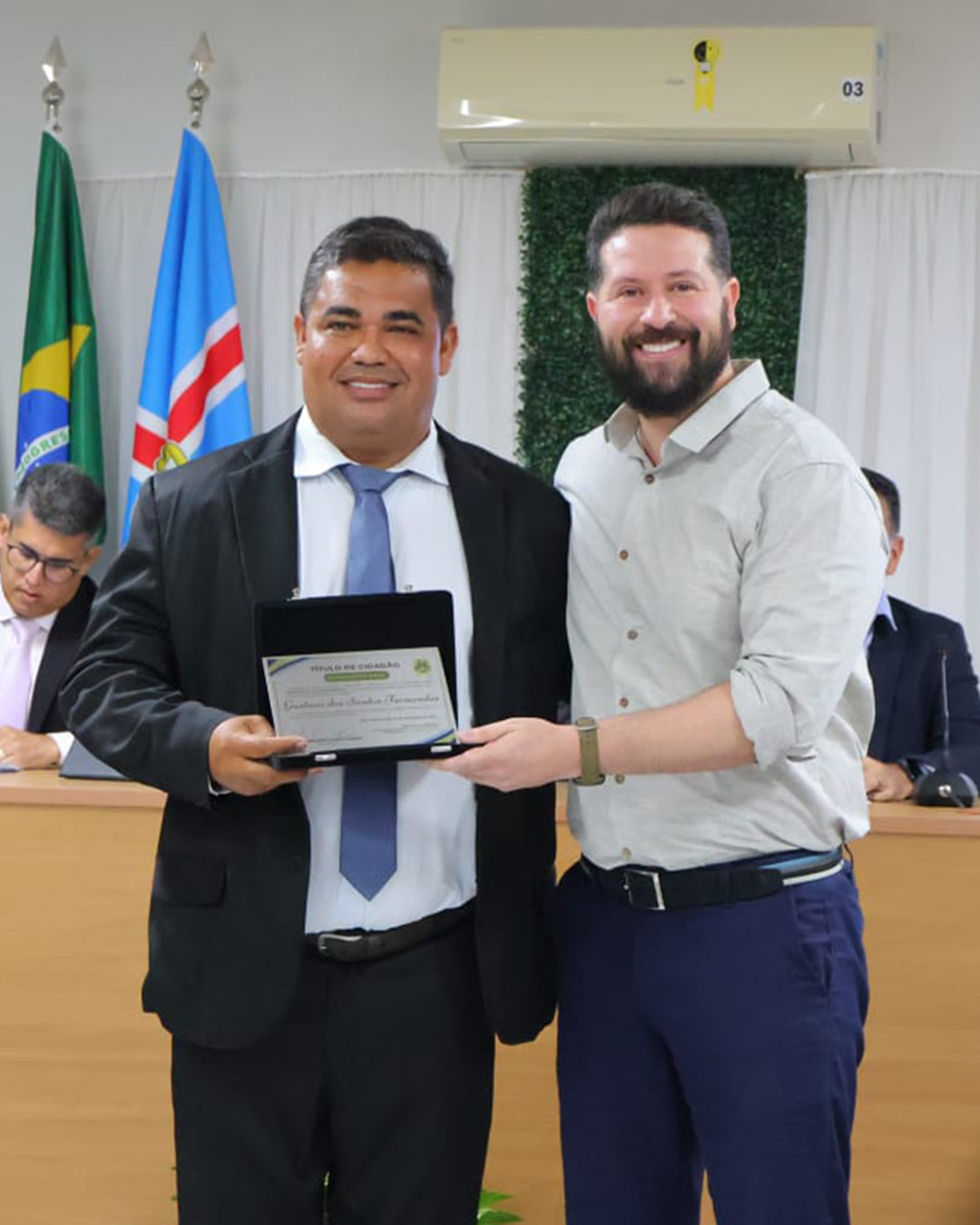 A solenidade também contou a participação do prefeito Gustavo Santos, vice-prefeita Valeria Mesquita, secretários municipais, o Tenente-Coronel César Fagundes (Comandante do Batalhão de Policiamento Rodoviário – PMRN), familiares e amigos dos agraciados, entre outros.