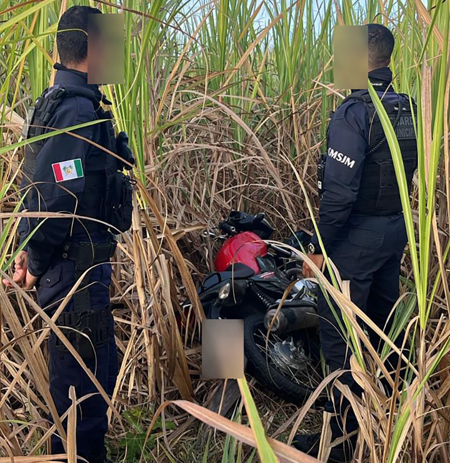 A vítima informou uma possível rota de fuga dos criminosos e repassou o sinal do rastreamento do veículo. Com isso, os agentes foram até o local indicado e conseguiram localizar a moto, que estava abandonada em um canavial.