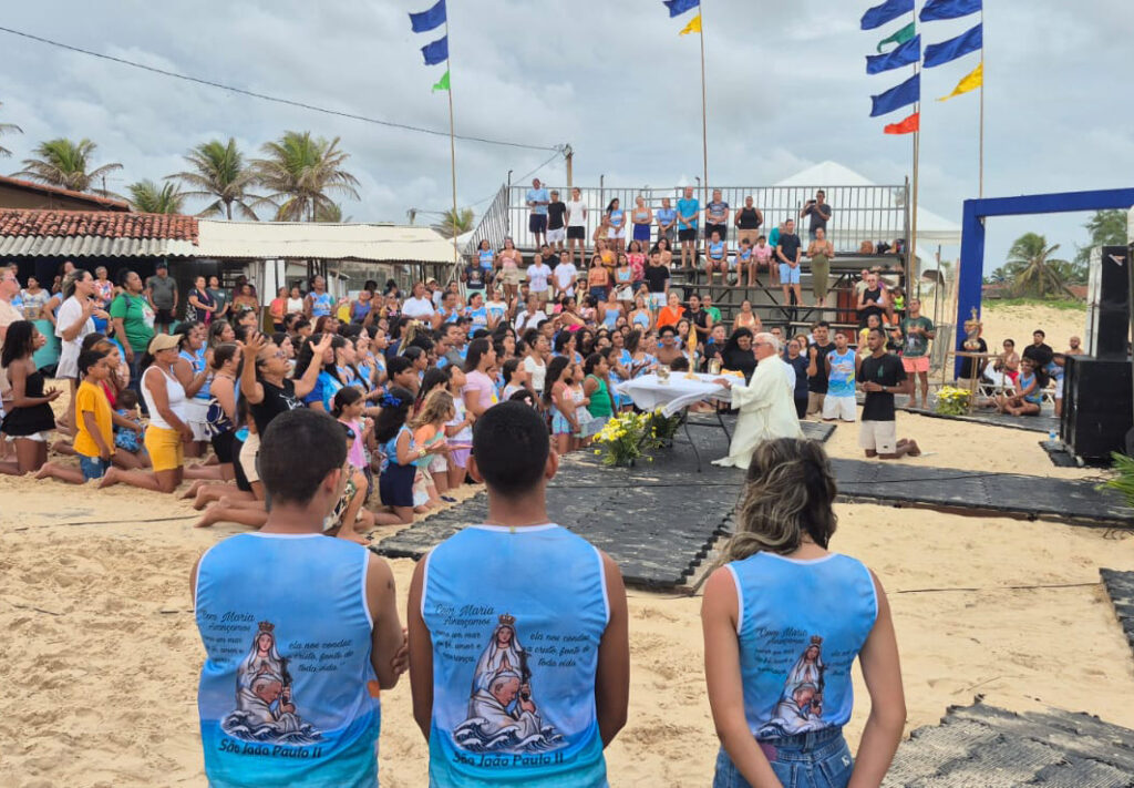 A Pedra Oca – Praia de Camurupim foi palco, neste sábado (07/02), de um grande encontro da juventude durante o evento “No Mar de Maria 2026”, promovido pelo Terço da Juventude da Paróquia de Nossa Senhora do Ó.