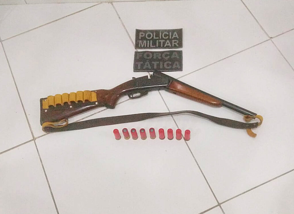 Nas buscas realizadas no local, os indivíduos conseguiram escapar pulando muros e quintais de residências vizinhas. No entanto, abandonaram a espingarda calibre 12 da marca CBC, com numeração suprimida, além de nove cartuchos do mesmo calibre.
