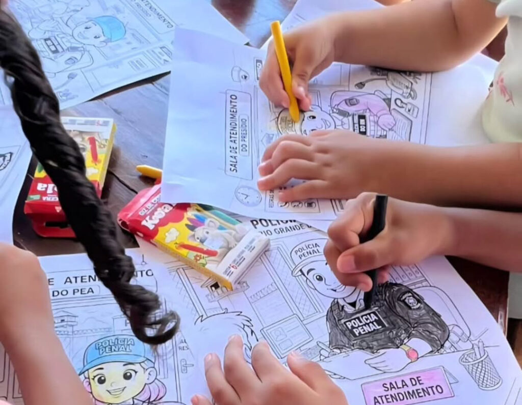 Na unidade prisional de Alcaçuz, em Nísia Floresta, policiais penais iniciaram um projeto-piloto voltado às crianças que visitam familiares custodiados. A iniciativa busca oferecer um ambiente mais acolhedor nos dias de visita, com atividades de pintura e desenhos que abordam, de forma lúdica e educativa, aspectos do trabalho institucional desenvolvido no sistema penitenciário.